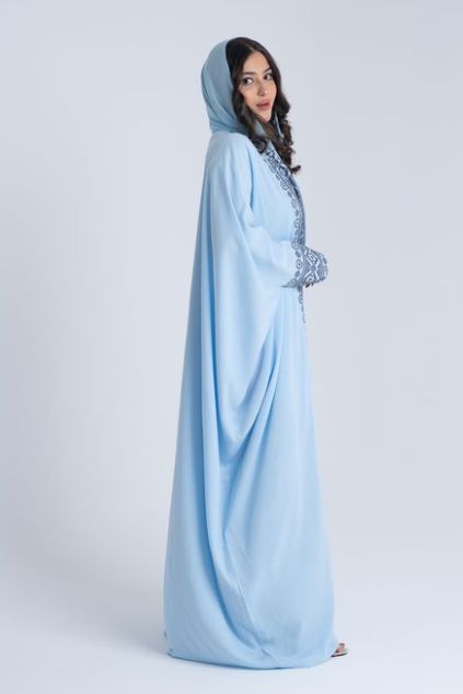 Overlap abaya with embroidery on the cuff and sleeves made from high quality linen fabric.