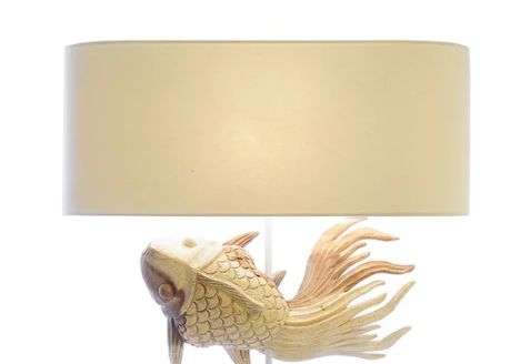 Floating Fish Table Lamp 210679 (Natural) L35 W15 H36 Th50.5 cm. Shade Details 550215 (Ivory Linen) L55 W20 H23 cm.