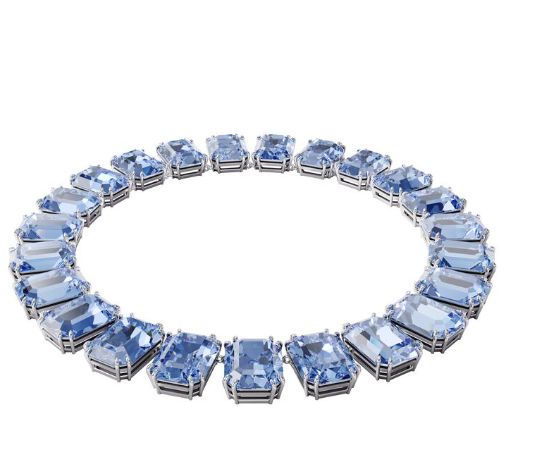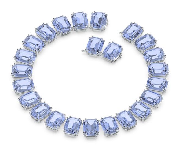 Discover your new wardrobe essential with this elegant necklace, designed with a row of periwinkle blue octagon cut crystals, cradled in rhodium plated prong settings. Finished with a hidden closure for a seamless effect, a simple white T-shirt and pair of blue jeans take on a new life, once you add this necklace as a finishing touch. This necklace is part of the Millenia family, designed by Creative Director Giovanna Engelbert for Collection I. Comes in a Swarovski branded box Certificate of Authenticity included with 2 Years Warranty Article No: 5609703 Collection: All-Around Colour: Blue Length: 36 cm Material: Crystals,Rhodium plated Family: Millenia