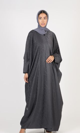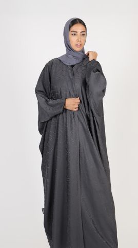 Abaya with woven pleats with embroidery on the abaya and sleeves