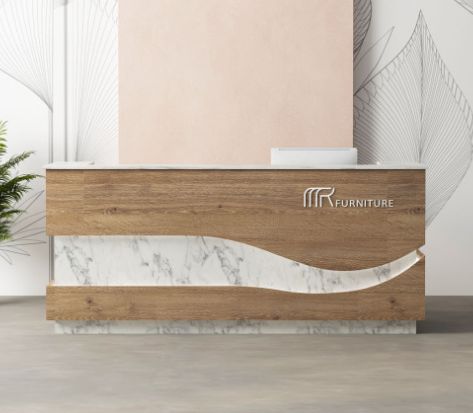 Welcome your customers with this elegant Trigo reception desk. This model is made using 18 mm thick MDF board. The raised front design is carved using a CNC router machine. The grove behind the raised panel to fit the LEDs reflects the careful thought that went into its making, which took 6 hours. A movable base and 60mm swivel ring elevate this desk's aesthetics while adding to its features.