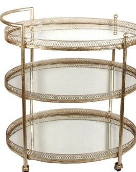 This serving trolley is sure to blend in with any home décor thanks to its innovative, modern design with a glass top and a gold-tone metal frame. Castors ensure easy serving and the multiple shelves help you transport and store snacks and drinks.