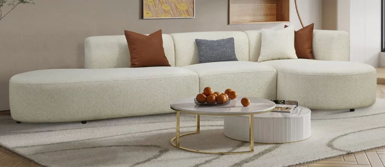 Today, Qasr Al Saraya Company offers you a wonderful modern corner sofa set, designed with elegance and high taste to enhance the beauty and comfort of your home. If you are looking for a premium sofa set that combines quality and luxury, this set is the ideal choice for you. - This modern corner has a unique and attractive design that blends perfectly with any interior decor. - The set features spacious and comfortable seats that provide you and your family with the best relaxing experience after a long and tiring day. - The set is carefully designed to provide optimal back and body support, which makes it the perfect choice for enjoying family times and hospitality.