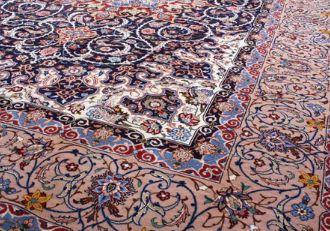 Handmade - Qamkha Color: dark blue / dark beige Material: silk and wool amount: 1 Sizes (cm): 220 x 151
