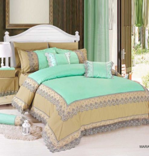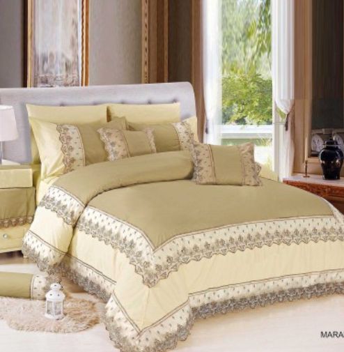 Miral Bride Quilt Set 14 Pieces Quilt 1 240X260 cm Rubber sheet 1 200X200cm Pill bag 4 50x75cm Square pillowcase 2 40x40cm Cushion filling 2 40x40cm Kleenex dressing 1 12x24 cm 1 long pillow 20X50 cm table dressing 1