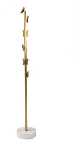 A clothes hanger with a unique and practical design, an elegant structure of shiny golden steel and a base of white marble that fits with your home décor, with an ideal size and a unique design that catches the eye... Specifications: Height (cm): 185 ........................ Width (cm): 30 Depth (cm): 30 ................................... Shape: Round Main material: Steel......................... Sub-material: Marble