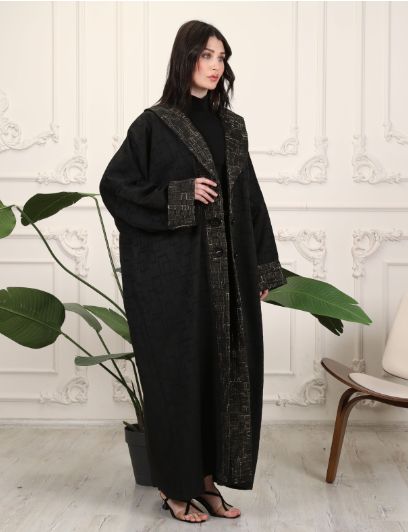 Make your look classy with Newroz Store! Abayas to suit all your occasions and aspirations! Black open abaya with long sleeves. Hejarah on the abaya with trimming on the sleeves, neckline, and the edges of the abaya. Sizes: S - M - L