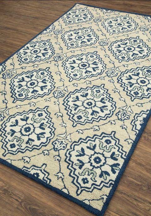 Hand Tufted Rug in Dark Ivory/Navy Blue