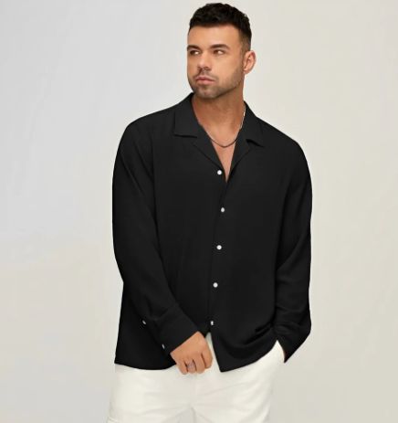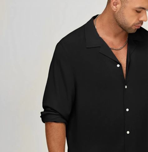 Black long-sleeved cotton and linen shirt