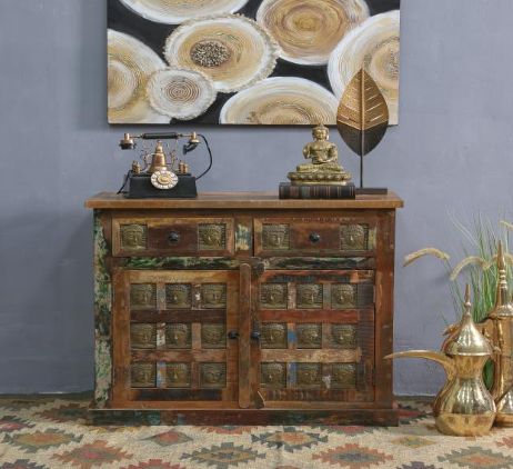 Description - Wooden Side Board - Two Wooden Door - Two Wooden Drawer - Made Out of Recycled Wood - Made in India - Handmade Product - Sideboard Available in Dubai & Abu Dhabi Store