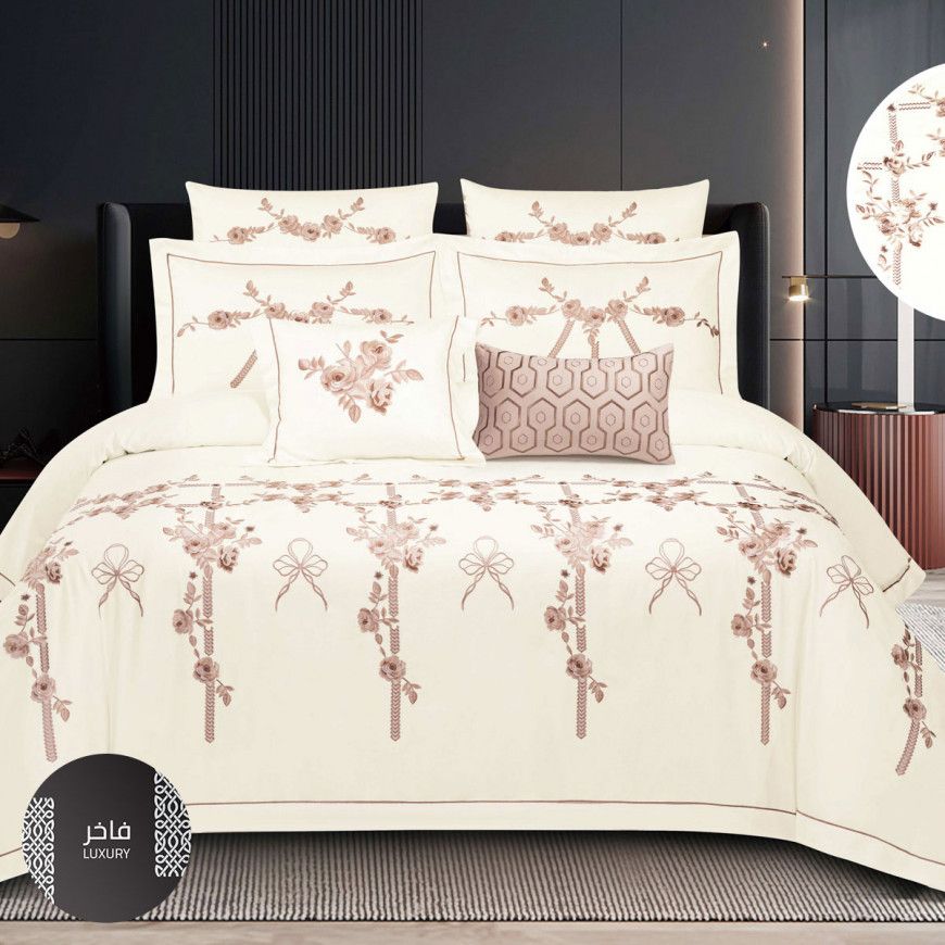 Enjoy a good night's sleep and sweet dreams on the Marill mattress made of 100% cotton fabric that is soft and comfortable for the skin. It is woven with 300 stitches, which means the number of vertical and horizontal stitches for each santi. The higher the number of stitches, the softer and more durable it is . The tablecloth is characterized by beautiful embroidery with thin, soft threads, which gives the tablecloth a gorgeous look.