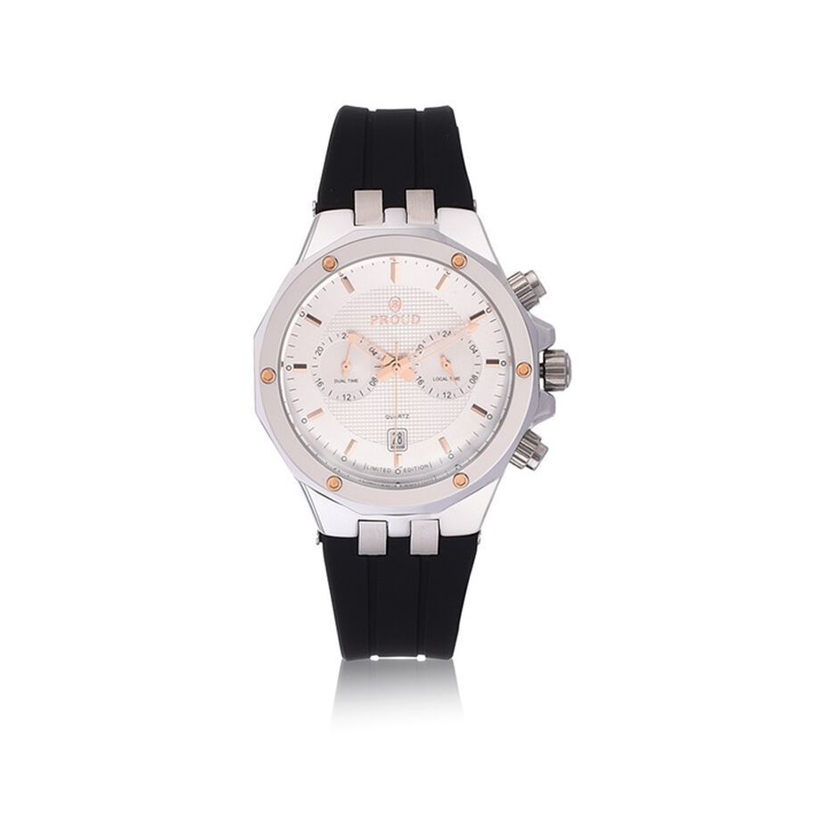 Proud watch in rose gold and silver with a waterproof rubber strap from DARAH.