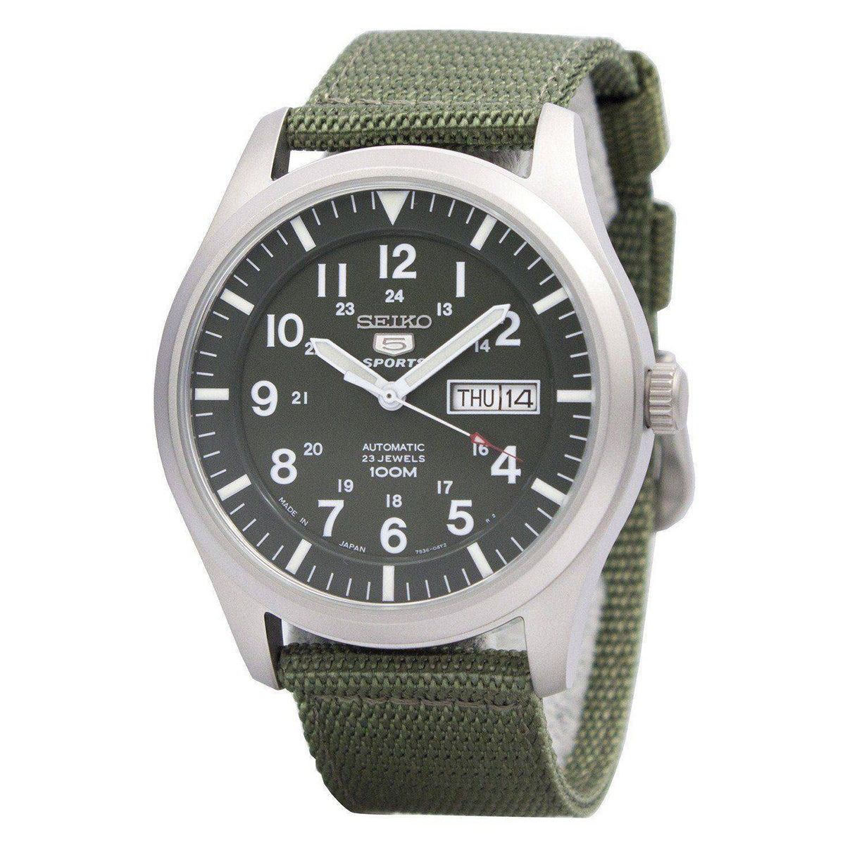SEIKO 5 SPORTS AUTOMATIC MADE IN JAPAN GREEN DIAL NYLON STRAP WATCH SNZG09J1 MEN'S