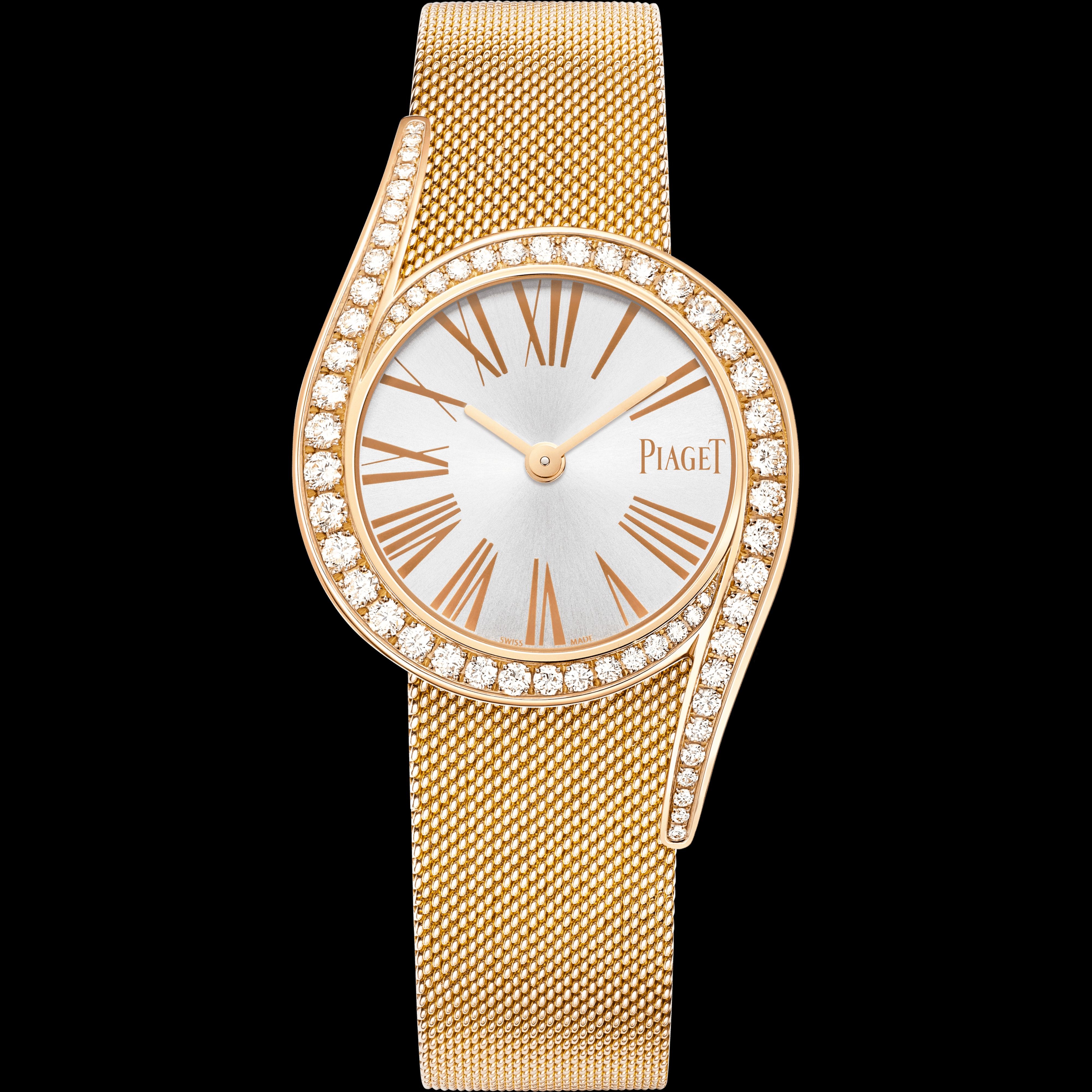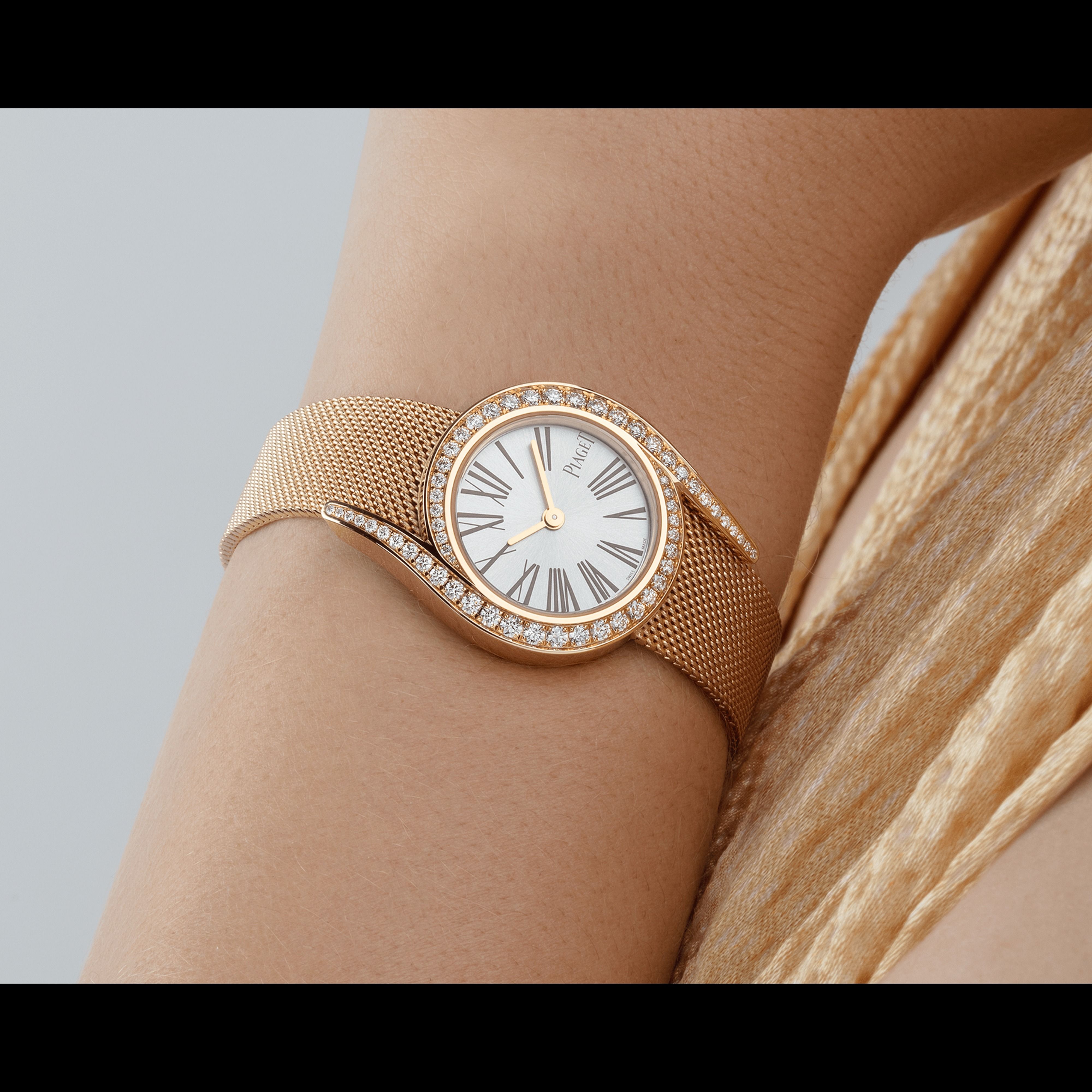 Limelight Gala watch Limelight Gala watch, 26 mm. Case in 18K rose gold set with 60 brilliant-cut diamonds (approx. 0.92 ct). Milanese 18K rose gold bracelet. Buckle set with a brilliant-cut diamond (approx. 0.01 ct). Piaget 59P quartz movement.