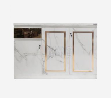 Console cabinet, multi-purpose cabinet, 120 cm., Gold Marble model Product Features - Multi-purpose cabinet covered with melamine, marble pattern, Modern Luxury style - Large cabinet can store a lot of things - The shelf inside the cabinet can be adjusted to the height - low of the floor - Open cabinet with key lock Prevent lost items - Drawers for storing items. Comfortable to pick up and use - Made from E1 wood, safe for health. does not cause allergies Does not sting eyes and nose when in use - Softclose hinge system reduces impact during opening-closing - Ball-bearing drawer slides - Melamine fronts decorated with aluminum eyebrows, golden aluminum frames - make up the drawers with gold mirrors - beautiful, luxurious, suitable for use in homes, offices, hotels, shops and etc.Console cabinet, multi-purpose cabinet, 120 cm., Gold Marble model Product Features - Multi-purpose cabinet covered with melamine, marble pattern, Modern Luxury style - Large cabinet can store a lot of things - The shelf inside the cabinet can be adjusted to the height - low of the floor - Open cabinet with key lock Prevent lost items - Drawers for storing items. Comfortable to pick up and use - Made from E1 wood, safe for health. does not cause allergies Does not sting eyes and nose when in use - Softclose hinge system reduces impact during opening-closing - Ball-bearing drawer slides - Melamine fronts decorated with aluminum eyebrows, golden aluminum frames - make up the drawers with gold mirrors - beautiful, luxurious, suitable for use in homes, offices, hotels, shops and etc.