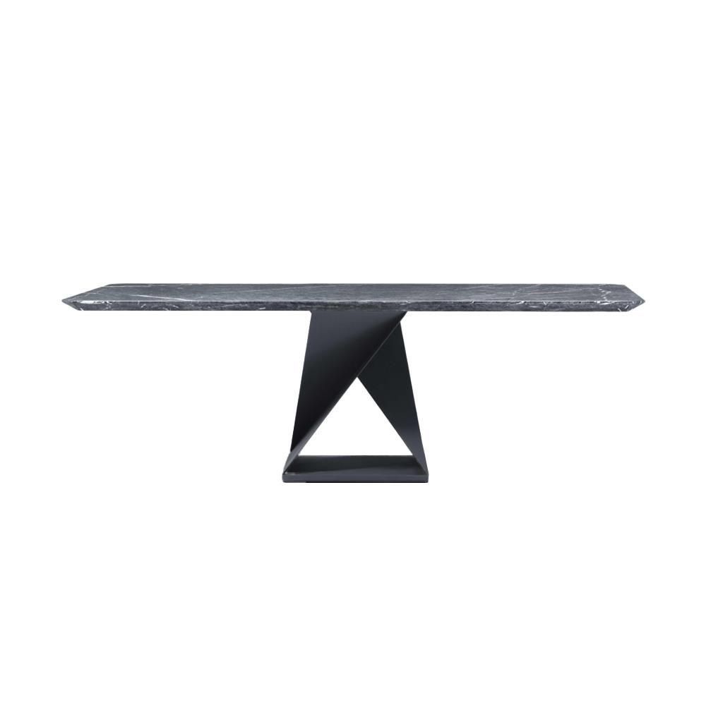 Modern style rectangular dining table, model ZING, elegant under the world-class brand Camerich, able to accommodate chairs for 8-10 seats, elegant with a gray galaxy stone top. Received with black coated metal legs. Sculptural shape, unusual design, outstanding and unique. You can also put a chair to use without getting in the way of your legs. You can order made to order (MTO) to change the stone top. to meet the diverse needs of customers Product code 1216618 Fabric dining table 8-10 seats gray galaxy stone top Black coated metal legs