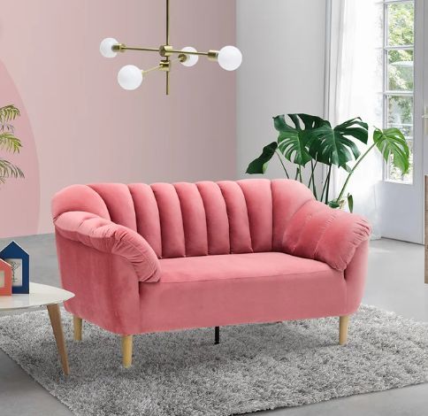 product information 2-seater sofa, Rosee model, size 153 x 85 x 82 cm. The structure is made of real wood, strong and durable, covered with pink fabric. Imported from abroad, bright colors help your home look more lively.