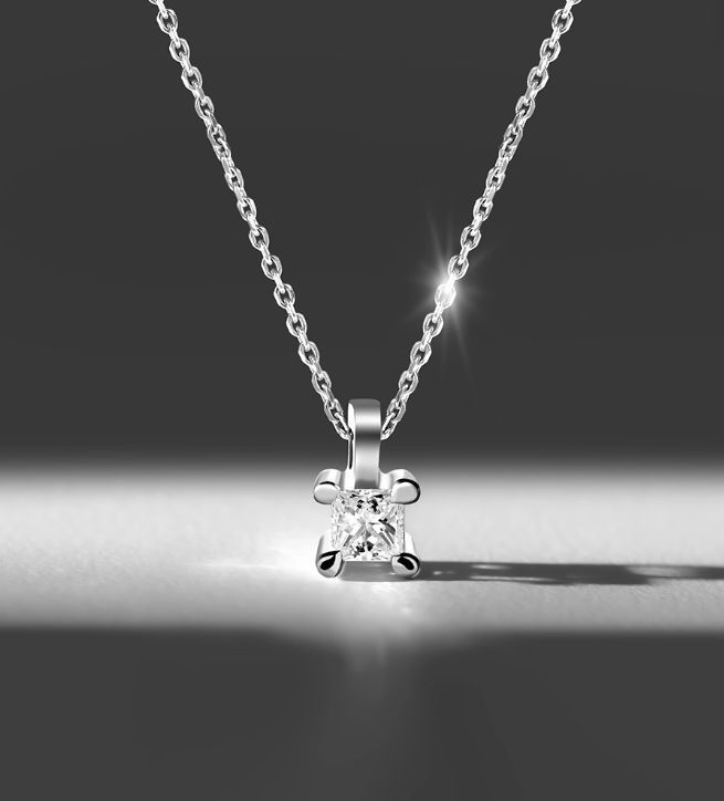 Carat Princess Cut Square Solitaire Diamond Necklace