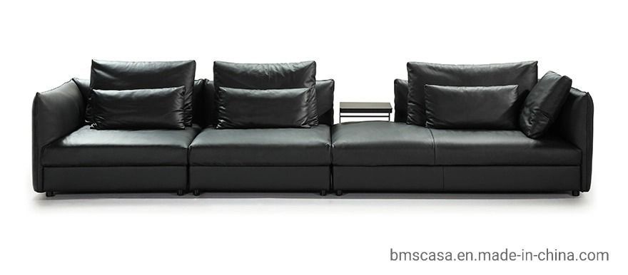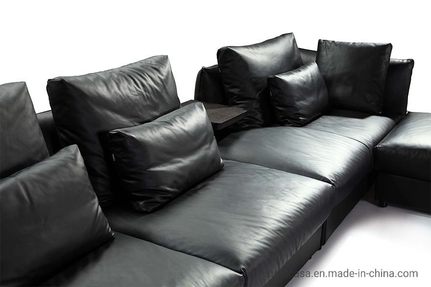 أريكة مقسمة من الجلد الأسود عالية الجودة لغرفة المعيشة