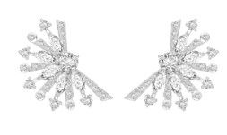 Snowflakes: Silver rhodium plated earrings decorated with CZ, marquise style, snowflake star design. Stud earring shape