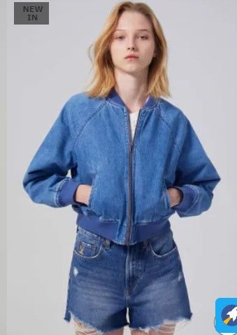 The bomber jacket that features a front zipper closure, ribbed cuffs, and a ribbed hem in a shorter silhouette that adds a modern and fashion-forward touch, making it a statement piece that effortlessly elevates your outfit. • Baseball collar • Front zip fly • Long sleeves • Ribbed cuff and hem • Welt pocket • Cropped length
