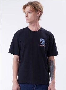 Men's "OCEAN SOUL" NECK TEE RELAX - Black, men's short sleeve t-shirt, black