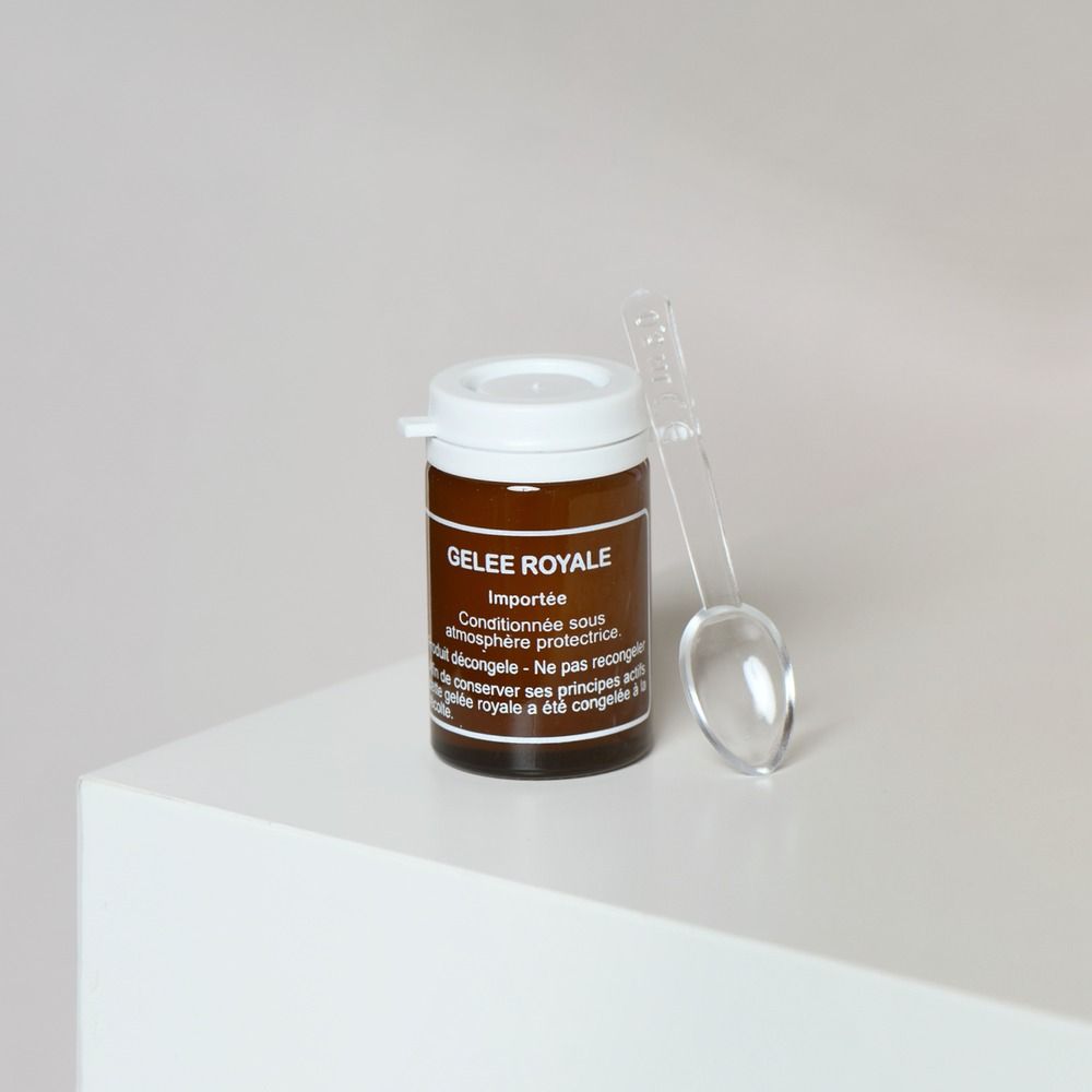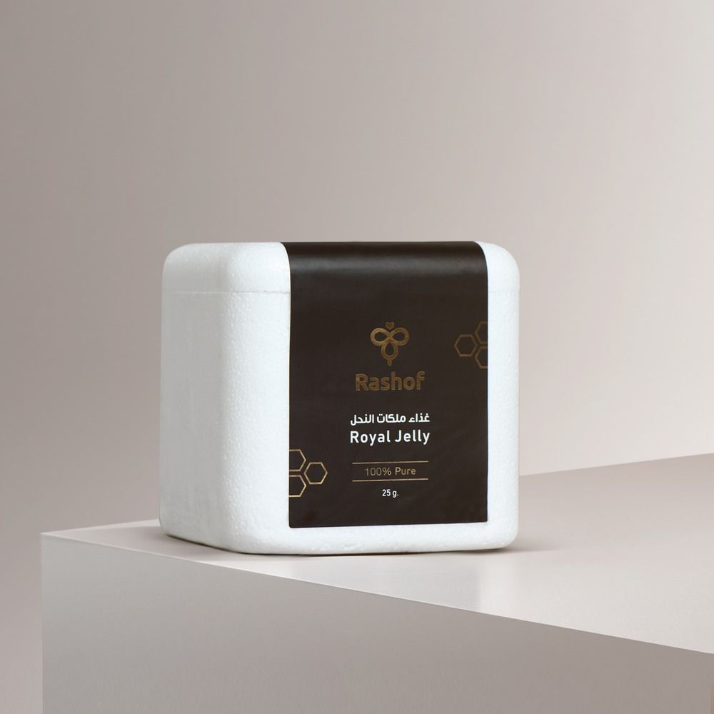 Royal Jelly Royal jelly is a gelatinous secretion produced by worker bees to feed the queen bees. It is manufactured and designated only to feed the queen bee and her young larvae. Royal jelly contains many nutrients, such as the eight essential amino acids, fatty acids, antioxidants, phenolic compounds, and many unique proteins, in addition to a group of vitamins and minerals, such as vitamin A, vitamin C, vitamin D, and vitamin E. And B vitamins, especially vitamin B5, known as pantothenic acid.