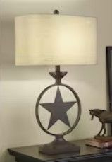 allen+roth 29.5" three-way bronze table lamp with fabric shade