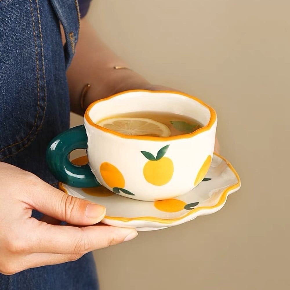 Add this beautiful mug to your kitchen shelf or coffee table to highlight the sophistication of your choices. Designed with attractive orange fruit prints, suitable for summer and fall, it comes with a striking touch that enhances its appeal. It is equipped with a practical handle that enhances ease of use. It can be easily cleaned manually or automatically.