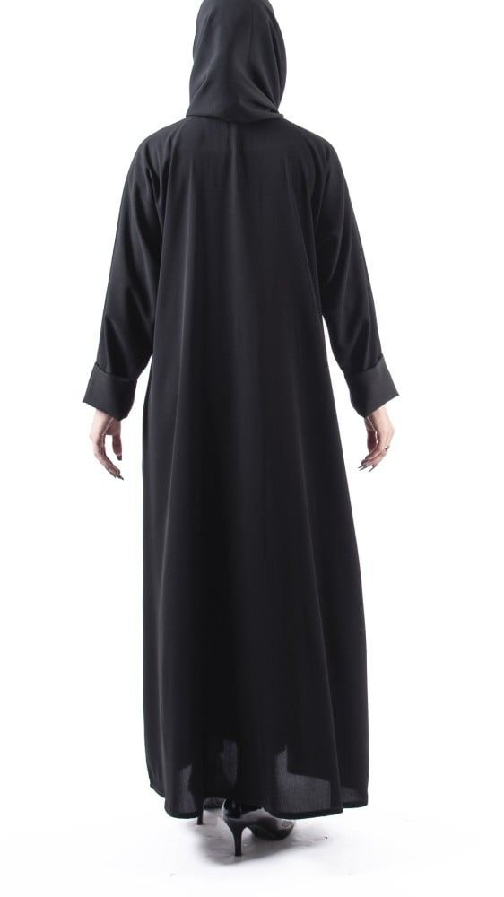 Abaya type: shoulder abaya Fabric: soft Closure: buttons Sleeves: Regular with folding ends in black black color