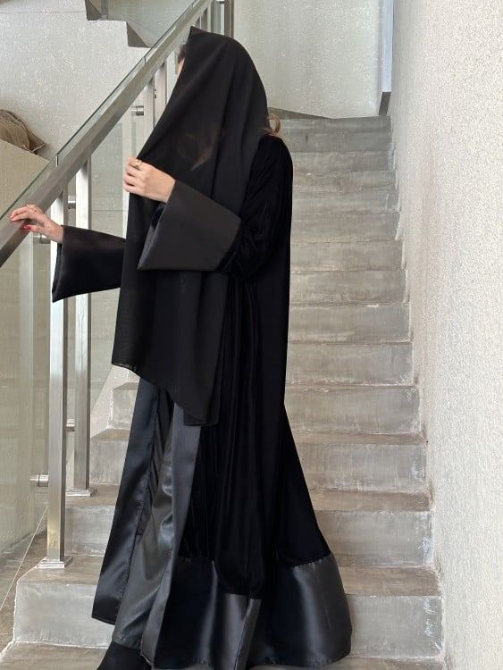 Velvet abaya with mikado edge sleeves and a mikado bottom