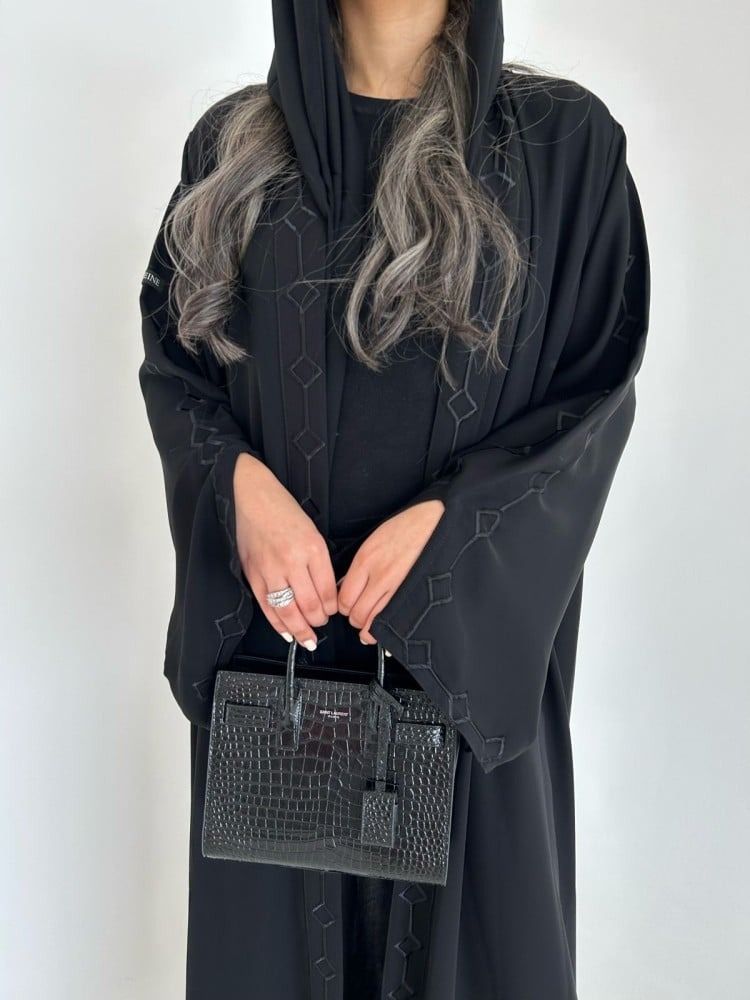 Abaya with an embroidered half-cloth cut.