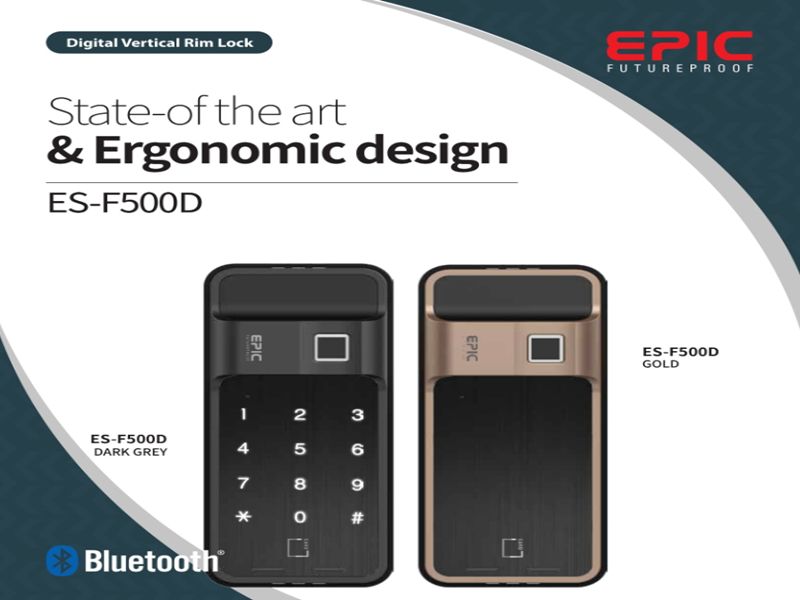 EPIC - Elegant Design 4 Way Operated Fingerprint, RFID Card, Bluetooth & Pin Method Digital Door Lock - Wifi Bridge & Remote Controlled (Optional). Model: ES-F500D
