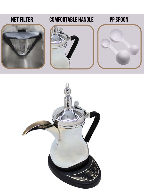 Electric Arabic coffee and tea maker, capacity 1000 ml, power 800 watts, silver colour
