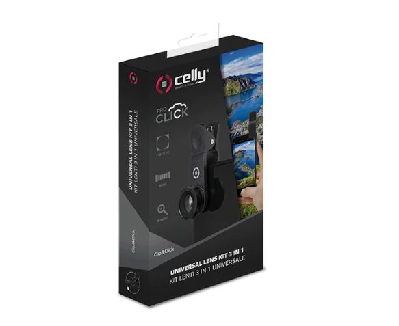 ! Clip & Click is a set of photography lenses * For photo lovers who demand more from their smartphone camera! Package Included Universal Spring Mounting System Clip & Screw-down Ring 3 Lenses: The Fisheye lens allows you to capture 180° photos and a distinctive spherical effect perfect for landscapes or portraits! It is recommended to use the wide-angle lens for panoramic photos or situations in which moving away from the scene to frame the subject is impossible. The telephoto lens allows you to photograph small subjects such as flowers or insects at close range. Applicable to smartphone or tablet cameras with lens diameter up to 8mm.