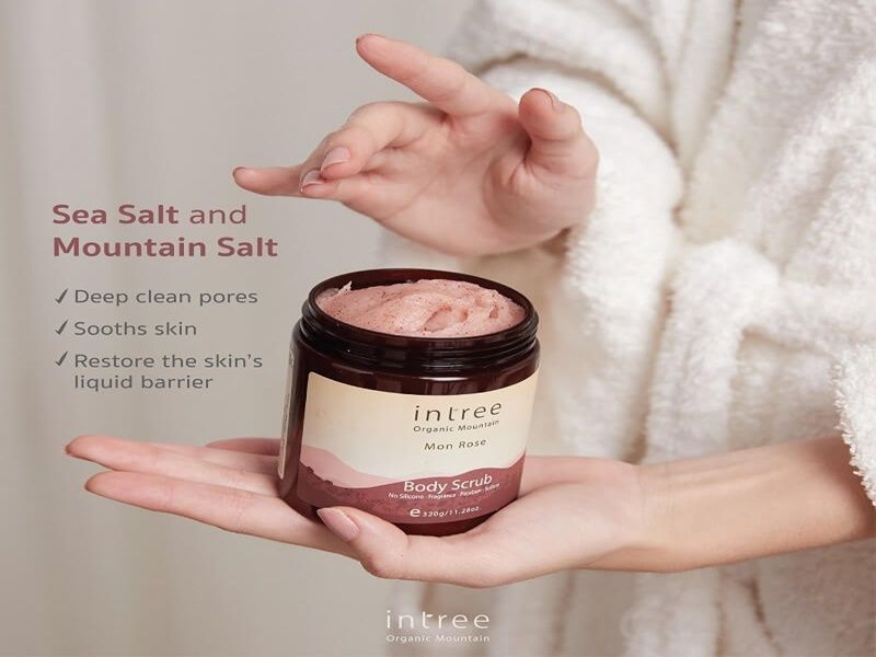 Intree Organic Mountain Mon Rose Body Scrub by Phutawan is a body care product made from mountain ingredients that promotes organic cultivation of hill tribe people of various ethnicities. This scrub is a perfect blend of sea salt and mountain salt for a balance of body scrub with the fresh scent of Organic Rose Oil that promotes relaxing feeling and restores skin to be healthy, youthful-looking, moisturized, clean, fresh, and lively again.