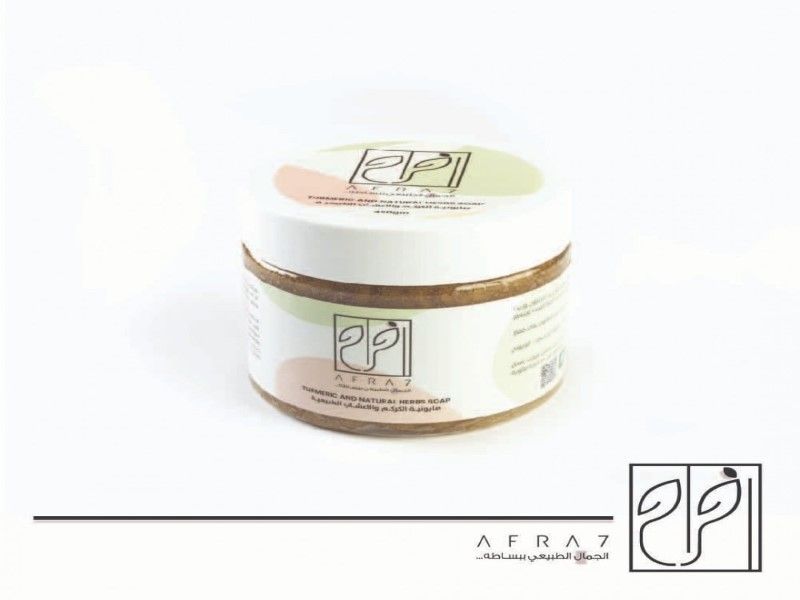 نظفي بشرتك بلطف بأستخدام صابونية أفراح بالكركم والأعشاب الطبيعية بزيت الزيتون وزيت جوز الهند .