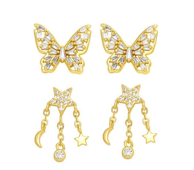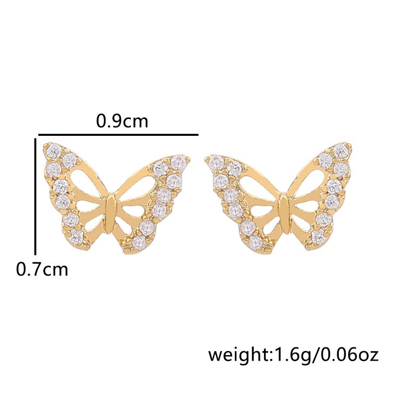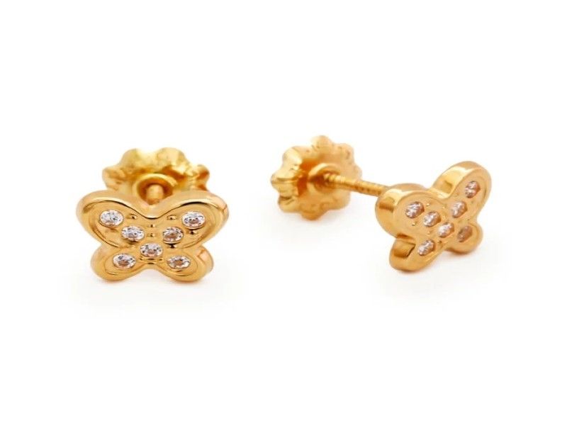 baby butterfly gold stud earrings with cubic zicron