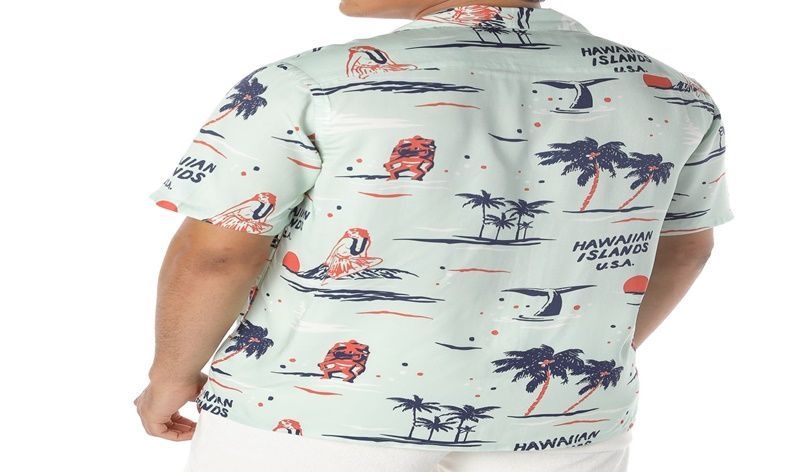 Big Kahuna Shirt Collar neckline and short sleeve. Full button fastening closure to front. Chest pocket details. Multicolor graphic pattern.