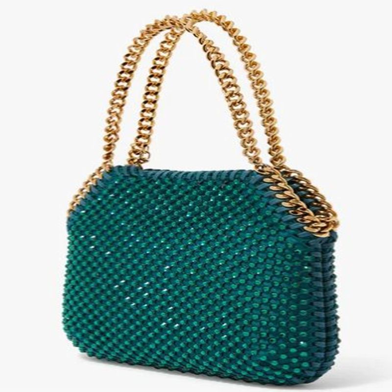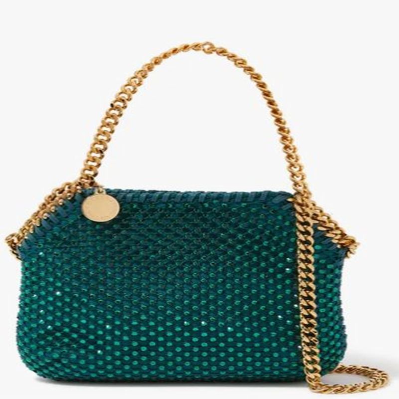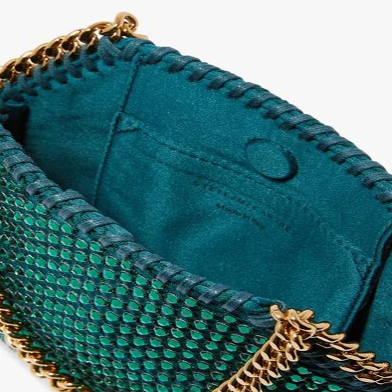 Play with texture and color using this Middle East Exclusive edition of Stella McCartney Falabella Bag, set to add a glamorous emerald touch to your looks this season. It's covered in twinkling crystal mesh, featuring golden chain-link straps. As always, it's finished with a logo charm and concealed magnetic fastening. The petite size is perfect for evening events when only the essentials will do.