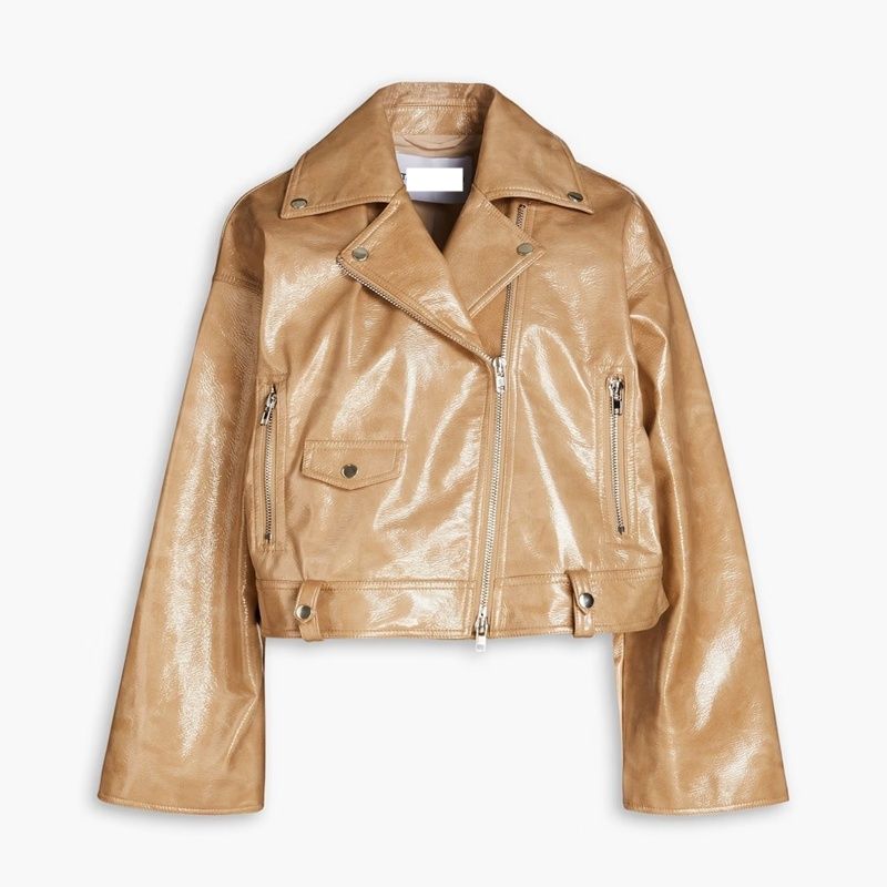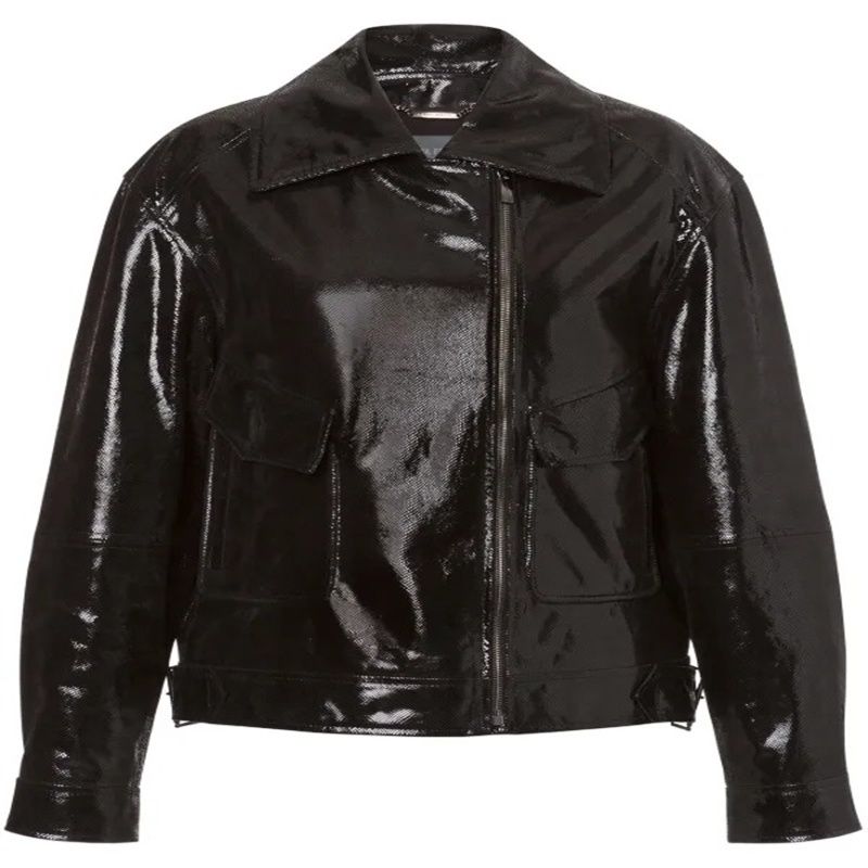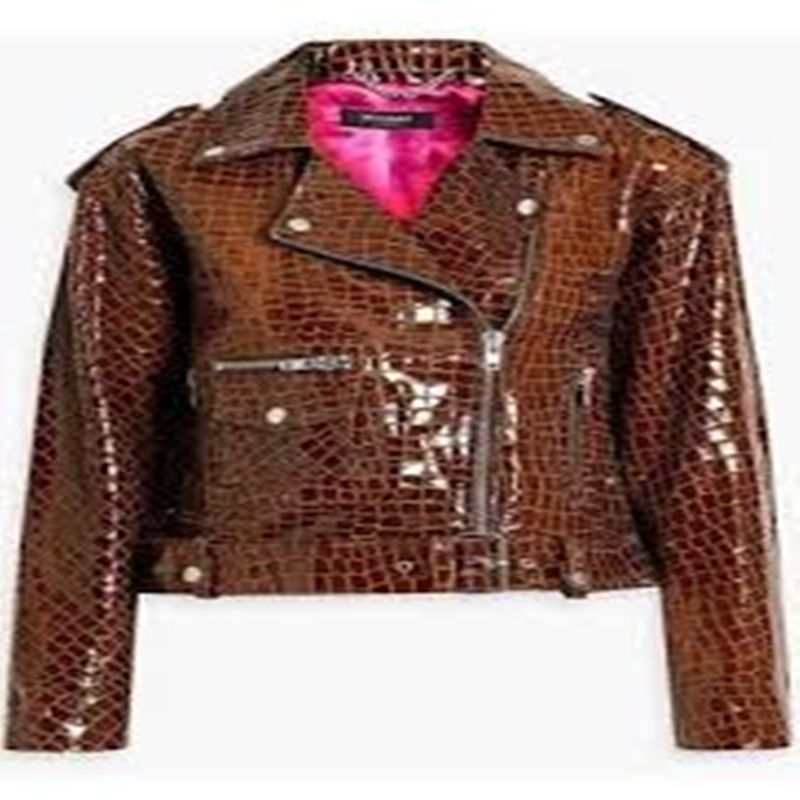 Glossed croc-effect leather jacket