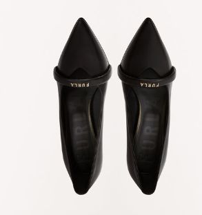With a pointed toe and a slender heel, these Furla Core shoes are perfect to take you from day to night. The epitome of elegance, it's crafted from soft nappa leather, with a bold twist thanks to perforated logo lettering on the small quilted strap across the front.