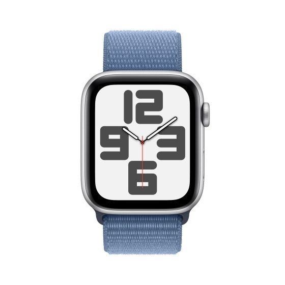 ساعة SE GPS مقاس 40 ملم هيكل من الألومنيوم الفضي مع حلقة رياضية باللون الأزرق الشتوي