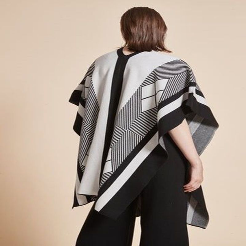 Women's Long Striped Jacket with Short Butterfly Sleeve