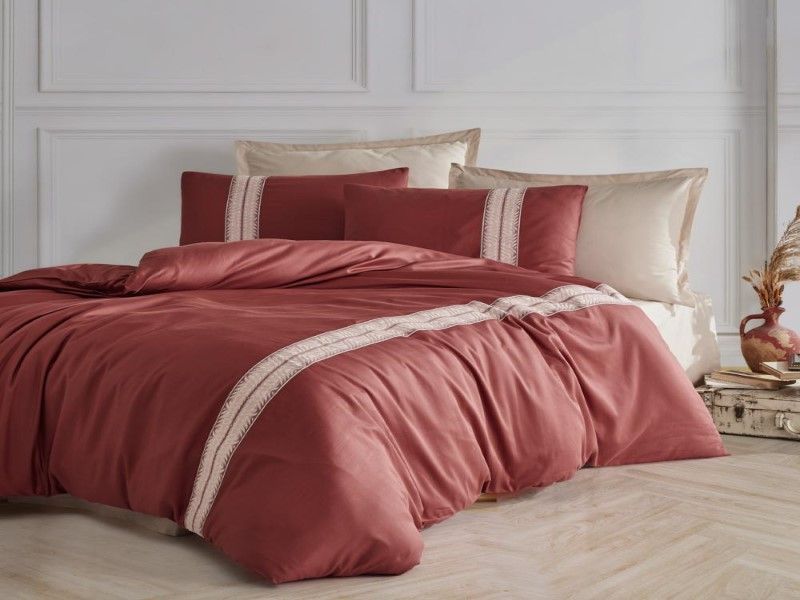 Double summer embroidered Turkish cotton bedspread, burgundy, number of pieces: 9