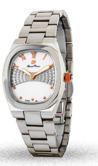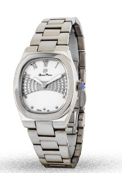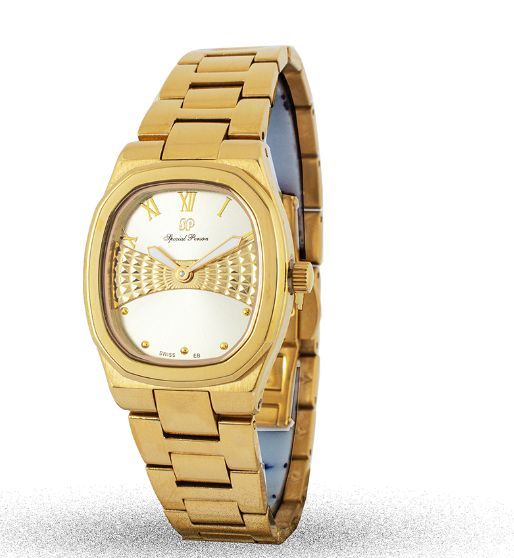 ساعة نسائية فخمة بمحيط وميناء الساعة بترتيب أنيق وسوار من الستانلس ستيل باللون الفضي والذهبي، تتميز بأنها تناسب كل المناسبات.