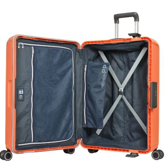 Spacious and Ultra Lightweight. Sturdy, impact resistant and flexible PP exterior. TSA lock. Push button pullout telescopic handle. Soft grip handles at top and side. Four sealed ball bearing inline skate wheels.