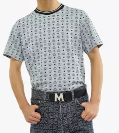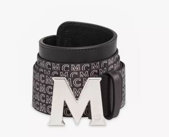 A monogram webbing belt, set off with the silver-toned cobalt “M” buckle.