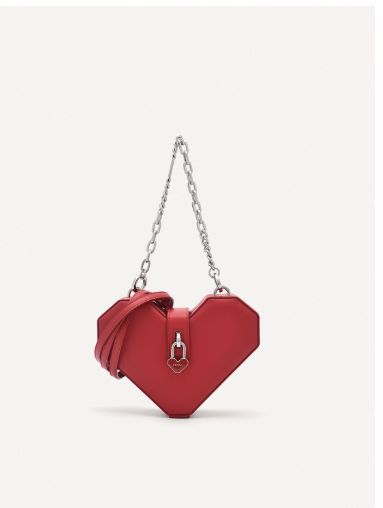 Show off your fashion savvy side with the Eterna Mini Shoulder Bag in redand rock the perfect mix of edgy and charming appeal. Featuring an unmistakable structured silhoutte and accented by a metallic chainlink handle, standing out from the crowd is a given. A removable shoulder strap gives an added versatility for a variety of looks and occasions