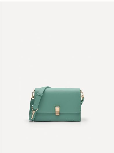 Enjoy a carefree stroll with the Carolyn Shoulder Bag in green that holds all your basic needs. Sporting a smart and easy-going design, the bag is imbued with a feminine look that is accentuated by the rounded corners and metallic gold hardware. Sling it cross-body for a weekend stroll or use it as a clutch, thanks to a removable shoulder strap